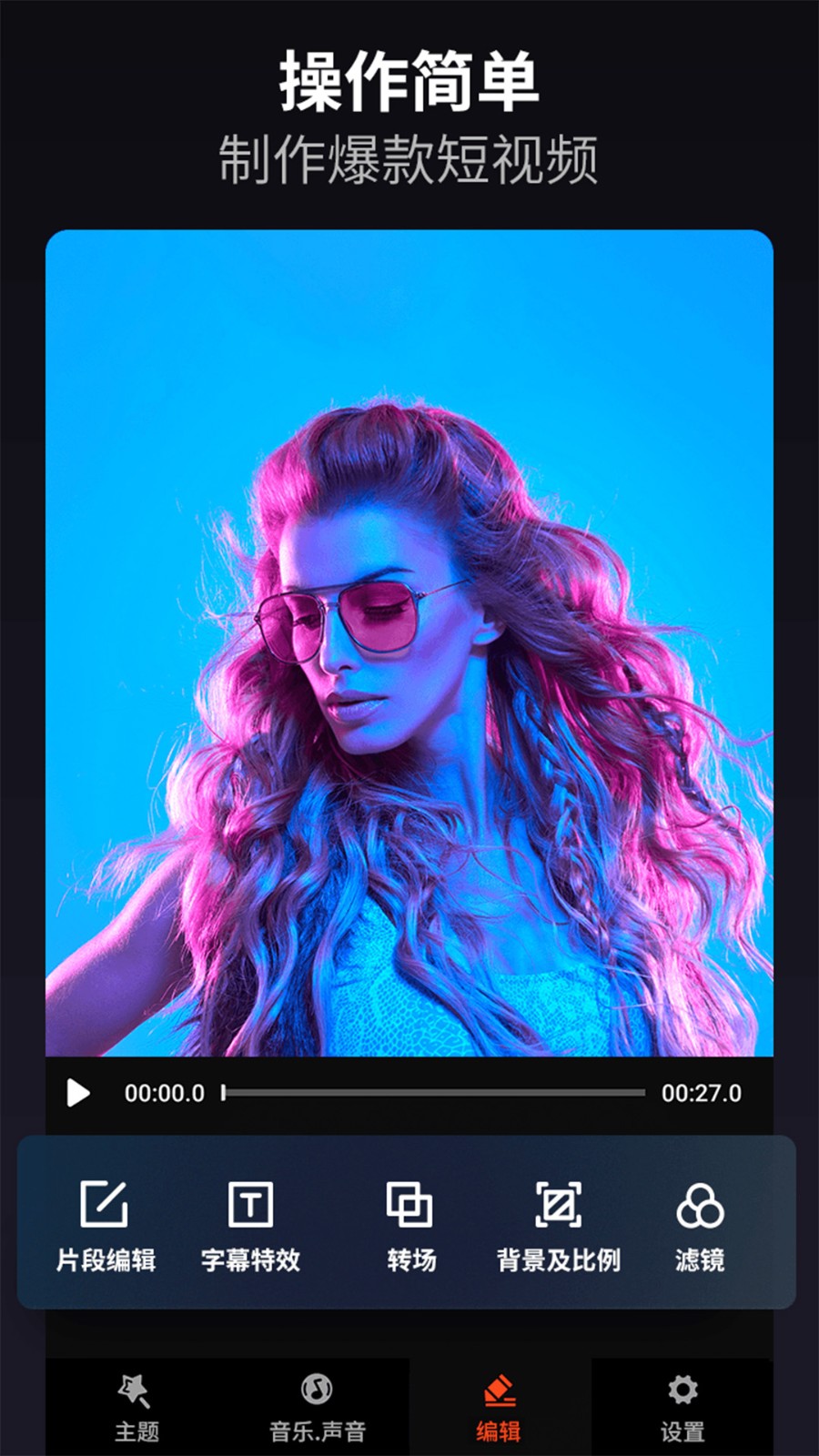【视频主题】亲情、友情、爱情、萌宠、爱豆、宝贝、节日、美食、嘻哈、个性、文艺、时尚、趣味、简约、在路上、珍贵回忆、美好时光、感恩节、圣诞节、生逢灿烂的日子……专业严选视频主题,一键生成主题微电影。