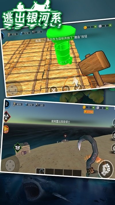 1、逃出银河系是一款火爆的木筏生存类型的模拟游戏,木筏求生游戏背景设置在大海上面。