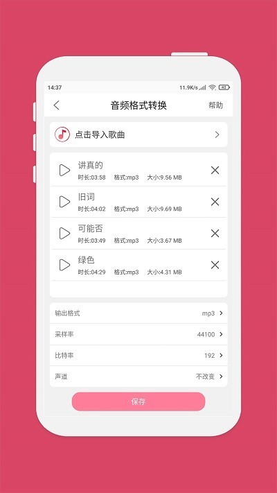 5、音频转换:支持各种主流音频格式的转换,包括MP3、flac、m4a、wma等;