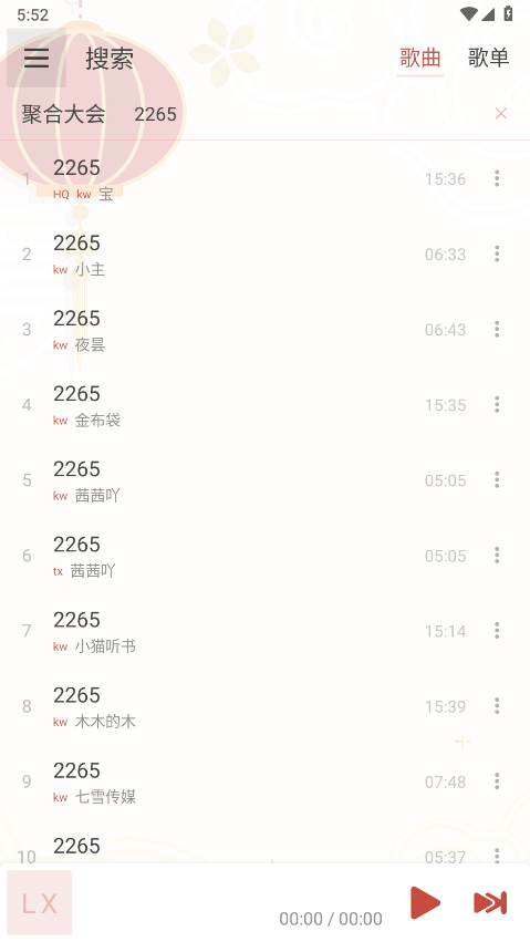2、通过名称,可以在线进行快速搜索自己喜欢的歌曲,汇集多种版本,自由选择。