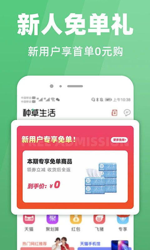 首次使用种草生活的新用户可参与0元购活动,免费购买任一活动商品!