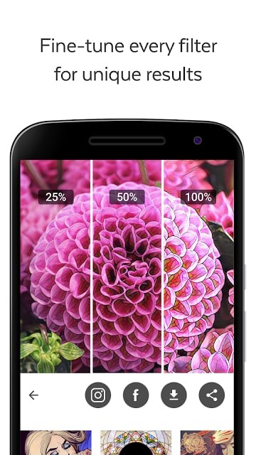 Prisma是一款功能强大的相机软件,它具备很多拍摄功能,比如说人像模式、夜景模式等等,能满足大部分的拍摄需求,但它最为强大的功能是滤镜,这是它能成名的重要一环。在拍摄时添加滤镜效果,能让您实时得到好看的图片,并且可以现场决定需不需要这张图片,很是智能。修图则是主要用途,导入图片即能修图,手机端的图片导入就是访问相册,所以您需要给予其权限,有了图片之后就能利用这里超多的滤镜来对其进行修正。并且这里还具备自动化的修正,不是简单的添加滤镜,而是能转换风格,这是利用到了人工智能技术,效果突出。此外他还具备种种功能,小编介绍不过来,总之是非常好用就对了。本站这里带来的是Prisma安卓版,安卓系统专用,大家赶紧来下载体验吧。