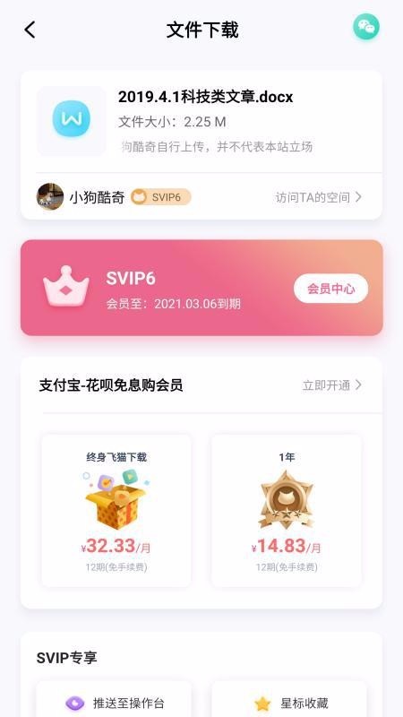 --飞猫云开通vip可以立即享受:免弹窗广告;专属vip下载点高速下载;文件转存;文件搜索(vip2以上);网赚单价提成等特权!