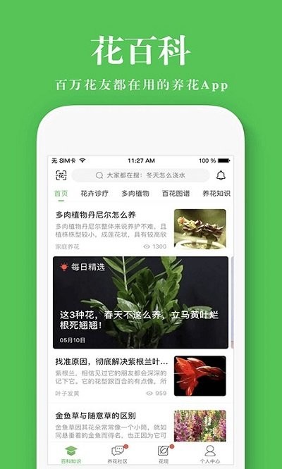 花百科app是一款提供有关花的资讯rjian ,您可以依据软件的内容,阅读对应的养花文章,学习和把握养花的知识和方法;软件为你提供海量的花的种类,多肉植物、桅子花、君子花、长寿花等等热门品种,为您推荐大量的养花需要留意的问题,学习养花的常识问题,为您提供大量的知识;这里有十分普遍的问题提供,叶子发黄、烂根、虫害、病害等问题,您可以学习到一系列的解决方案,迅速学习以防止恶化;也有多肉百科提供,多肉植物图片及其普遍的问题都是会全面的提供给你,使你学好养花的方法和技巧。这款花百科安卓版你值得拥有,要是有兴趣的用户可以来下载体验一下!
