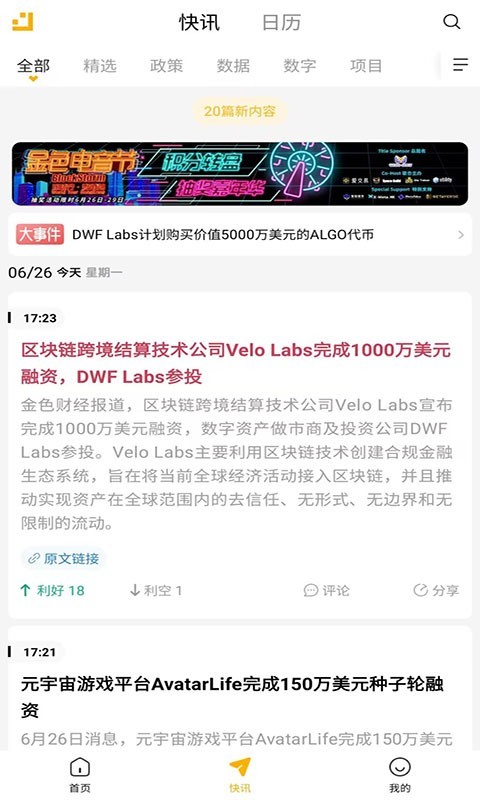 6、新闻播报,实时查看数字货币和区块链行业最具参考价值行业消息,让用户迅速了解行业变化,为投资决策提供参考;