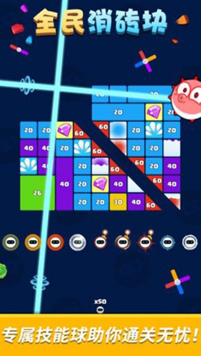 3、优先击打有技能的砖块,可以帮助你更快地消除喔