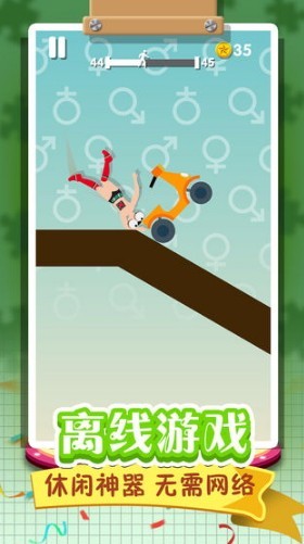 翻滚的人类是一款十分搞怪魔性的趣味休闲益智类游戏,由莫邪游戏发行出品。游戏整体的画面以清新的卡通风格为主,配上轻松愉快的背景音效,体验游玩起来十分有趣。游戏中玩家将操控一名人偶,通过弹射的操作,来让你的人偶粘住关卡内不同的障碍物。由于该游戏采用的关卡制的设定,因此游戏为玩家们精心准备了各式各样的关卡,玩家需要在充满各种障碍物的关卡内旋转跳跃、弹射翻滚,需要注意的是,如果没粘牢的话就会掉入深渊内,就需要重新开始游戏了。该游戏的玩法看似十分简单,但是极其考验玩家的的耐心以及操作技巧,因为该游戏在玩法机制上很大程度上遵循了现实生活中的物理机制。因此,在看似魔性的休闲玩法下,还是有着很多挑战在等待着玩家们哦!对这款游戏感兴趣的玩家快快下载体验一下吧!