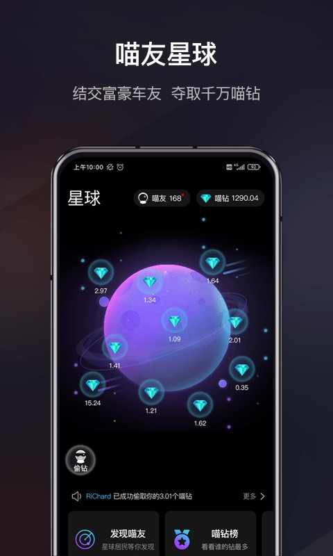 2、用户在线完成各种任务,积攒喵钻,使用喵钻兑换汽车装饰产品;