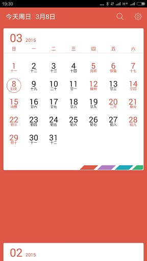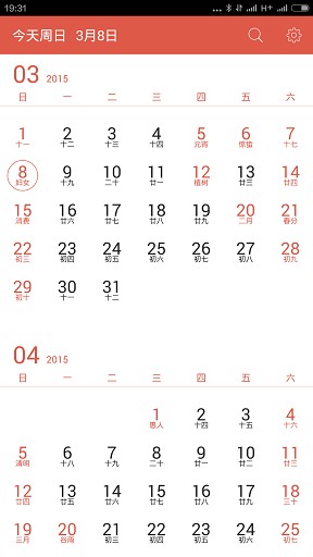 5、日视图:显示农历、黄历、当月节气和待办事件;