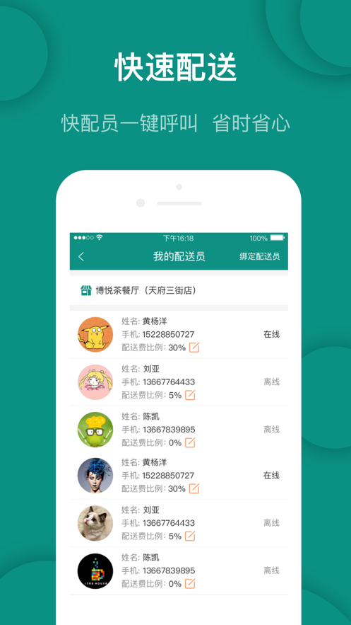 1、让用户对派送员进行高效管理,线上一目了然;