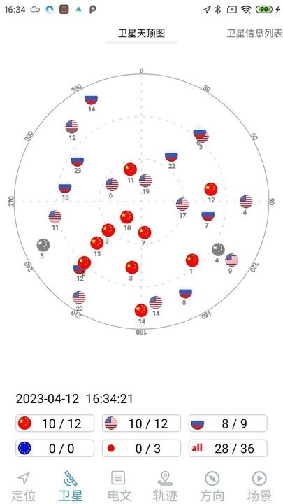 3、直观显示当前卫星信号接收状态,支持北斗、GPS、GLONASS、伽利略等多个卫星导航系统;