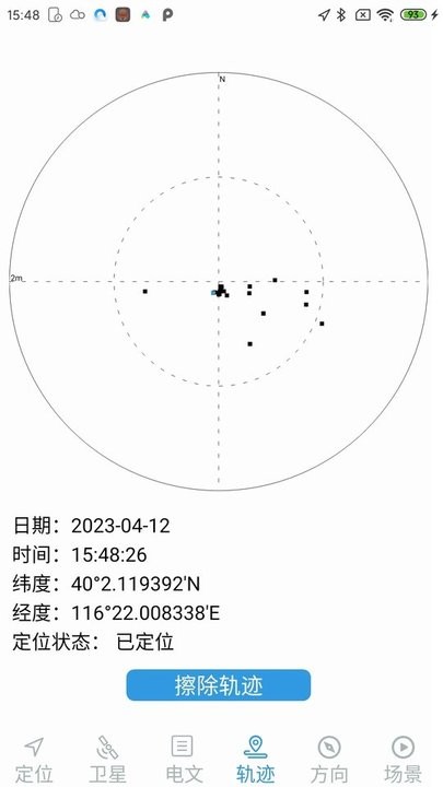 5、记录的卫星定位信息非常的全面,如卫星信号、卫星分布、速度方向、经纬度等数据都有;