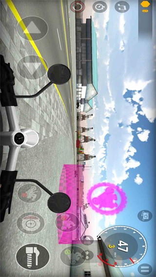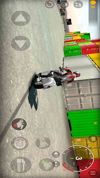 操作方面,采用多点触控的方式进行游戏。系统默认左下角两个按键分别控制车速的增减,右边的按键主要控制车手的重心倾斜方向,便于在空中表演后仍能完美落地。当然,考虑到不同玩家的操作习惯,在游戏设置中,玩家还可以将左右的按键调换,减少了游戏对玩家的约束力。