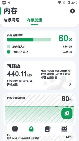 方便快捷的内存清理功能,迅速提升手机运行速度,同时你可以设置清理白名单,过滤掉需要保留的应用。