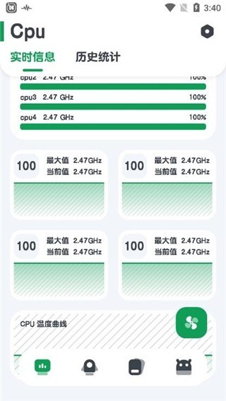 强力监测app实时监测 CPU 的温度和频率,分析 CPU 温度和频率的历史使用数据,并且支持多核 CPU 频率的同时监测,同时提供各个应用的 CPU 温度排行榜。