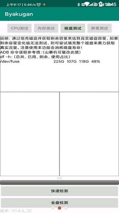 3、磁盘测试:通过填充磁盘的方式测试手机真实储存空间。