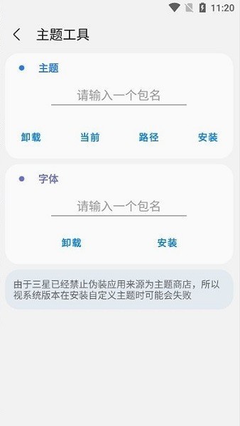 2、自由安装自定义主题和字体,可以获取当前使用的主题、图标、 AOD 、壁纸的 apk 包名、查询已安装的 apk 路径等