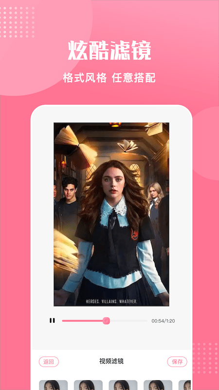 音乐和字体素材,软件还有多种滤镜,一键制作大片质感作品。