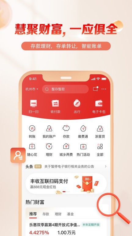 丰收互联app是由浙江农信推出打造的一站式掌上银行服务平台,整合全面的银行服务,包含超130多项公共政务服务,满足大多数用户的日常办事需求,真正做到足不出户也能办理相关的银行事项,省心又省力。它内置了十分丰富的功能服务,全方位覆盖银行理财、存款、贷款、水电费、游戏充值等各类服务,通过它,用户们可以实时查询自己的银行账户,查阅账户追加、账户删除、别名修改、交易明细、积分明细、账户挂失等信息,还能通过它来进行线上转账,无需线下银行办理,只需在手机上即可完成转账,而且还能在这里查询自己名下的信用卡信息,进行贷款、理财。此外,丰收互联最大的功能亮点就是支持自助注册、开户,即便没有实体卡,也能轻松实现转账支付、生活缴费、投资理财。有需要的朋友们快快下载使用吧!