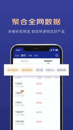 该app是京东数科旗下的高端财富管理软件,聚合持牌金融机构,致力于为富裕中产、高净值客户提供以客户为中心、线上线下相结合的财富管理服务,涵盖类固定收益、私募股权、私募证券、保险规划等全方位的财富管理服务。