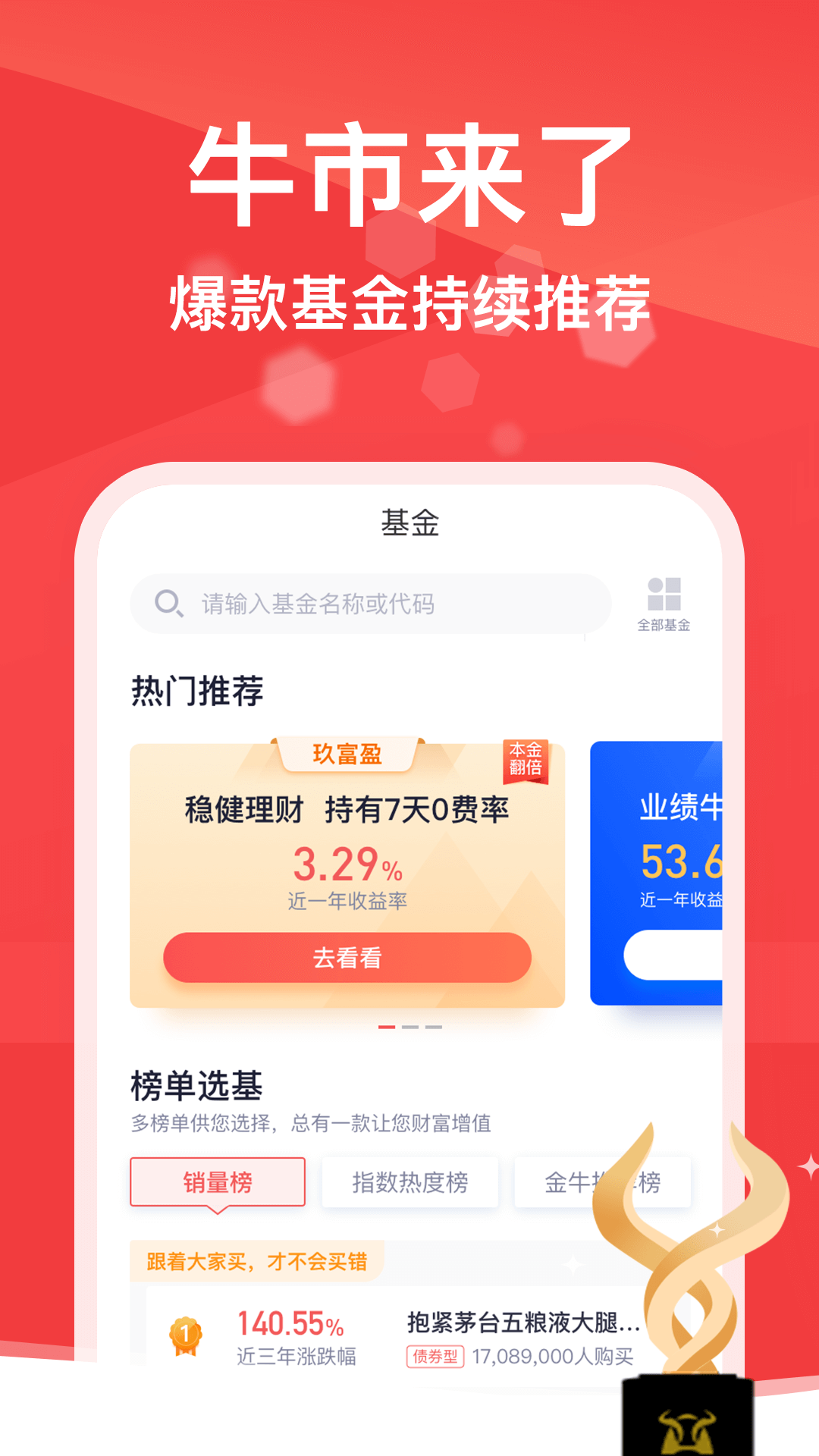 2、基金理财—为用户提供玖富宝、黄金基金等绩优理财产品,帮助投资者实现零钱理财、中长期投资等理财需求