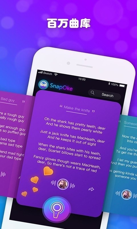 1、可以自由选择或搜索要唱歌的歌曲。我们准备了更完整,更流行的歌曲,剪裁了美妙的合唱部分,并匹配了歌词和和弦。您无需像其他K-ing应用程序一样演唱完整的歌曲;