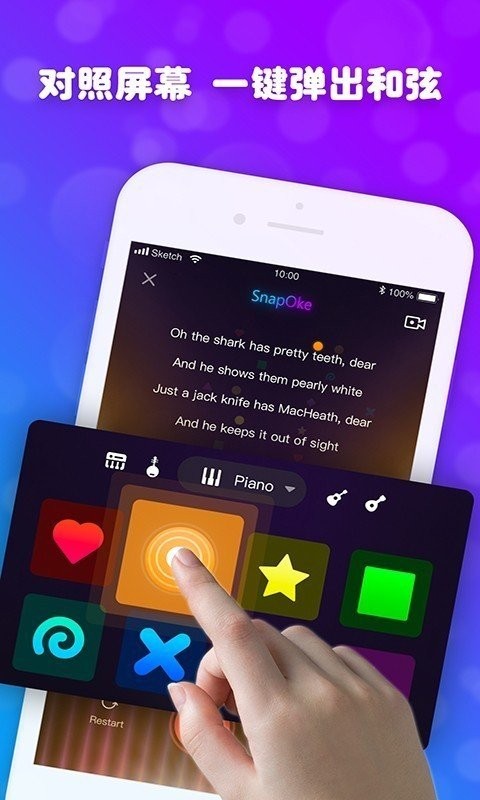 4、只需轻点彩色键盘,即可敲出你喜欢的音乐伴奏;