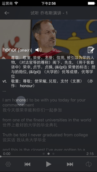 3、便捷的翻译与发音:点击单词即时翻译点击单词真人发音;