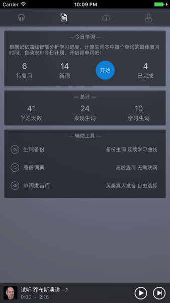 唐僧英语app是一款优秀的英语教学软件,由武汉行远马科技有限公司打造发布。可以用于协助你背诵英语短句和单词,也可以用于训练你的英语口语听力能力,让你的英文水准获得全方面的提高。除此之外,软件还有着非常丰富的英语听力的学习材料,包括电影原生、连续剧原生、演说朗读、品牌英语、VOA慢速、CNN新闻和其他类型的英语听力课程内容,适用在线收听和本地离线下载,软件还有着非常实用的单词背诵功能,新单词,生单词都是可以轻松背诵,会计算出你单词遗忘的时间,使你再次背诵的时候以避免忘掉。这款唐僧英语无限制版你值得拥有,要是有需要的用户可以免费下载体验一下!