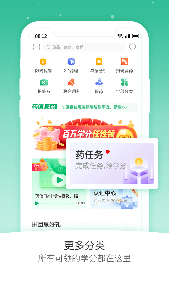 药信app是一款致力于医药销售人员的实用软件,该软件可以更好的协助业务员迅速进行管理和服务,线上就可以签到,持续签到还会有惊喜哦,一键点击签到就可以了,签到的操作更便捷,软件还有很多的分类管理,抢学分、资讯、视频和解析,随意点击就可以开展服务了,为您带来大量详尽的服务信息,全部可领到的学分都在这里等你领取,线上就可以收看视频资源,点击进入视频后,就可以马上观看到视频的内容,提升你的医学常识与基本常识,获得大量的工作经验;也有大量优质的学习内容,用不一样的方法供您学习医药知识,立即浏览到学习的药医知识。有需要这款药信最新版的用户可以来本站免费下载体验。