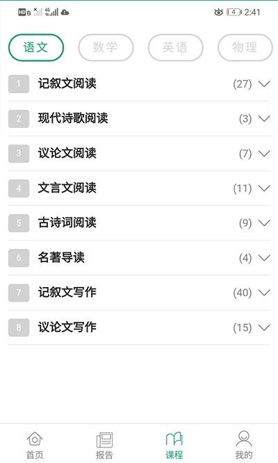 2、你可以依据班级寻找对应的课程,这里有一年级到八年级的课程;