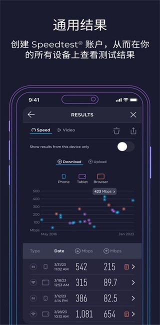 ookla speedtest是一款功能非常专业而且在生活中很实用的网络测试软件。在日常生活中每家每户都开始慢慢的装上了的网络宽带,电视也不再是之前那种需要天线才能观看电视的那种了,正在慢慢全面跨入信息科技时代。而这种事情也会发生很多小情况,比如我们选择的网络宽带,一个宽带的加取决于它的网络速度,速度越快那么它的价格就越贵,而很多不同网络这块信息方面的小伙伴很多都会在这里吃亏,导致的花了很多钱但是宽带的速度却没有达到真正支付的价格。而正是因为的这样这款软件就能够很好的帮助到大家,在小伙伴们安装好宽带的时候可以先用软件测试一遍,网络的运行速度、上传速度、下载速度等,如果出现数据的不对的情况,也方便叫装宽带的收费或者客服进行更换。本次小编给大家带来的是这一款ookla speedtest最新版它能够让我们在安装网络设备的情况下,减少不必要的消费。对这款软件的感兴趣的小伙伴,欢迎大家下载体验。