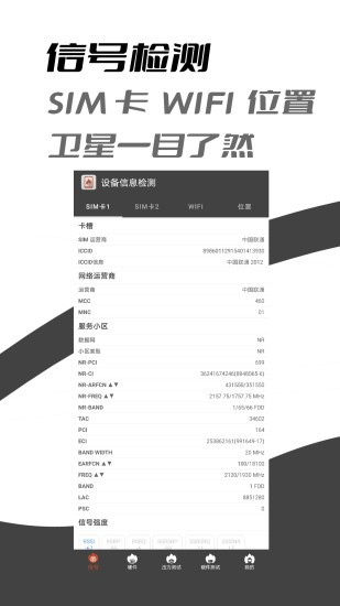 1、这款软件可以帮助用户查看到本设备的各种数据选项,分别分为概览、设备、系统、芯片以及卫星定位等功能。
