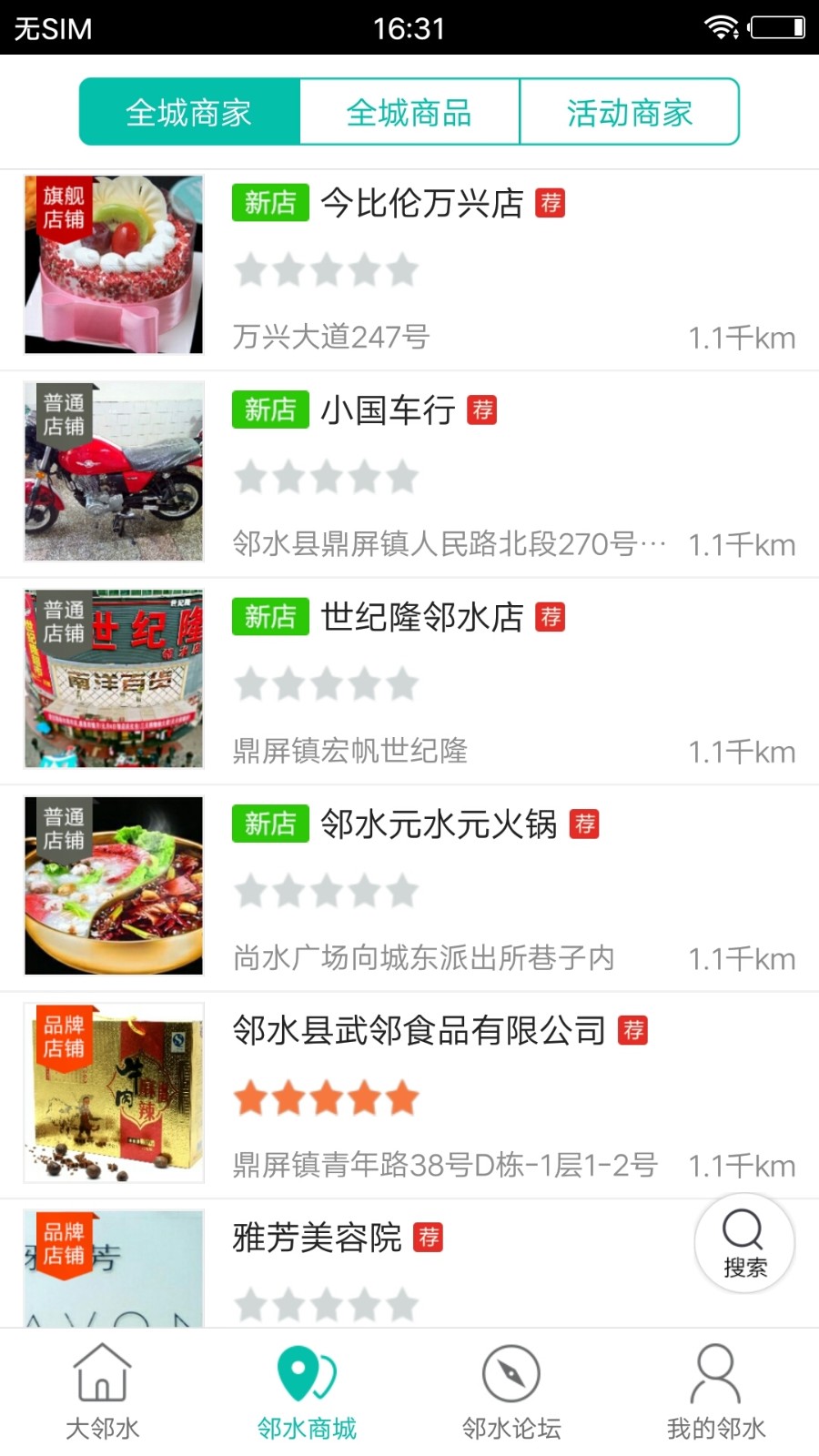 掌上邻水app是一款非常实用的生活服务软件,通过该软件你可以足不出门就可以了解到邻水周边的店铺,许多的当地商家都是在这款app上推广自家的店铺商品,让你可以随时进行购物,可以在家里购物,在家就可以购买到自己想要的产品;本地商家会有许多优惠促销活动,也会在网上推广,更有益于用户直接查询店铺地址,轻轻松松把握住特惠购物的机遇,在打折促销活动中下单选购最爱的产品;本地家政保洁、城市食品类、外卖送餐、招聘职位等,让您使用这款掌上邻水安卓版,享受本地服务的各个领域,欢迎有需要的用户来本站直接下载安装使用。那样就可以享受到本地的服务项目,享受幸福生活。