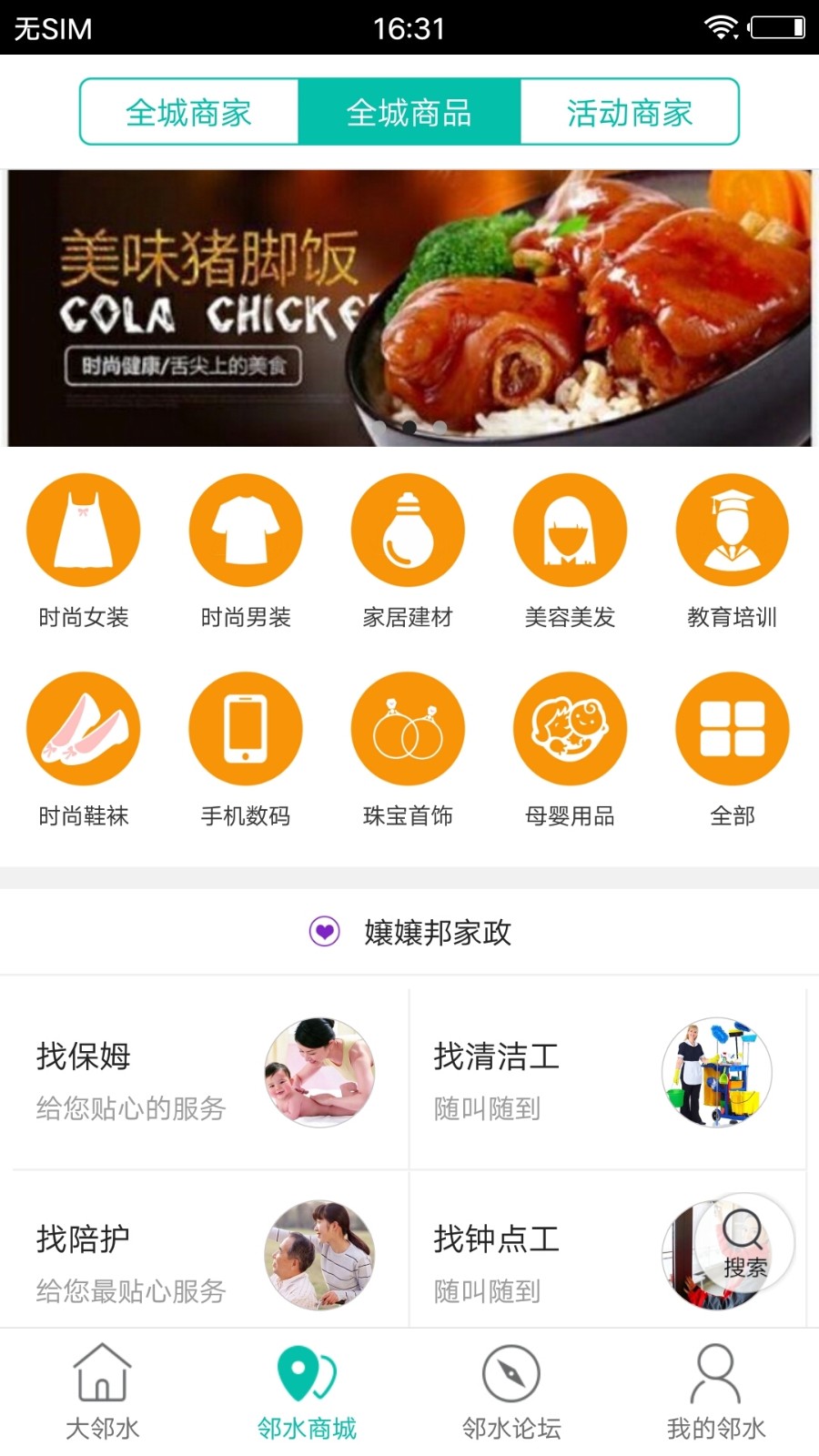 6、掌上邻水提供上门家政服务,在有家庭清洁、老人陪护等需求的时候,都能直接在线上下单预约;