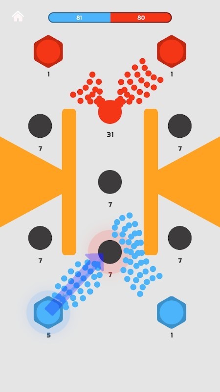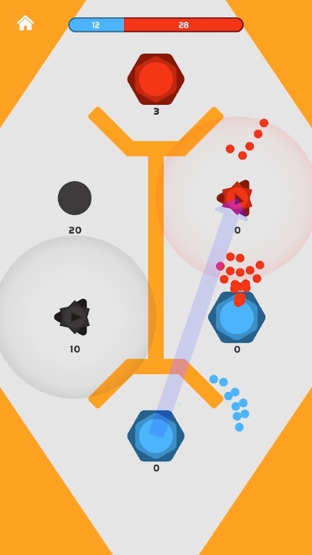 可以在点点碰撞关卡刚开始就发动全面攻击,或是一开始移动时就采用挑衅敌人的方法使其浪费掉一些场地。保护自己的点点并反击以控制筋疲力尽的的场地吧。这款轻松易玩的游戏里有很多种获胜方法;