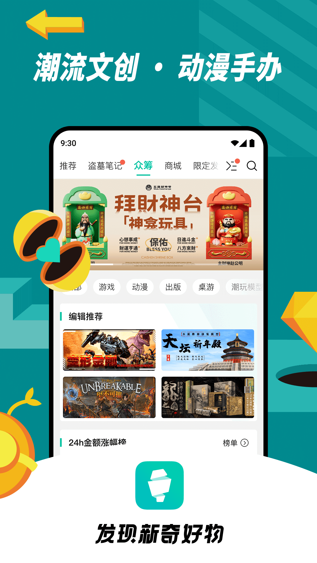 摩点app是一款能让你发现更多新奇好物的创意文化购物平台,软件专注于给大家带来更多有意思的商品,且商品的内容不仅限于我们日常生活所需,更多是带给大家文化领域的小物件,提高大家对文化、对生活的的审美,从而更加热爱生活,热爱生命。在软件中,我们可以看到有动漫衍生出来的动漫周边产品,手办等,喜欢二次元的小伙伴一定可以在这里找到自己想要带回家,放在书桌上的商品。我们还可以看到某款游戏衍生出来的物品,如游戏中人物手办,系列卡牌以及一些小饰品,此外,在这里我们还可以找到大量的桌游,有剧本杀桌游、策略对战桌游以及一些休闲桌游,有适合一个人玩,也有适合多人玩的,不同的游戏适合不同场合,同学聚会、个人休闲等。除了这些,软件中还有大量的音乐资源、出版图书以及一些日常小物件,提高您的审美的同时,给你的生活带来更多乐趣。感兴趣的小伙伴快来下载这款摩点app,来发现更多美好的物件吧。
