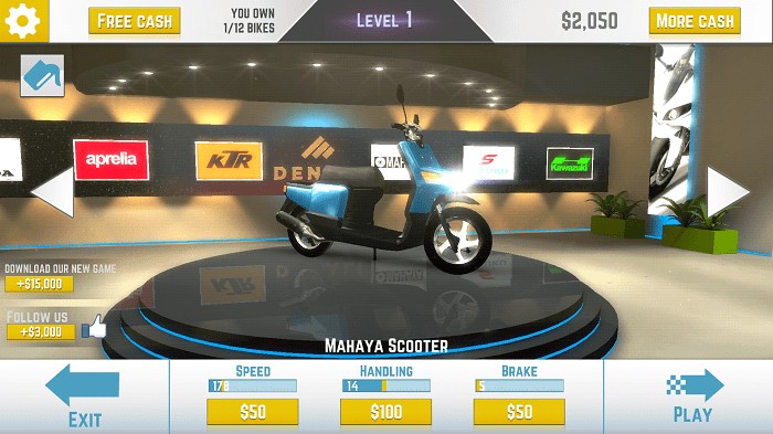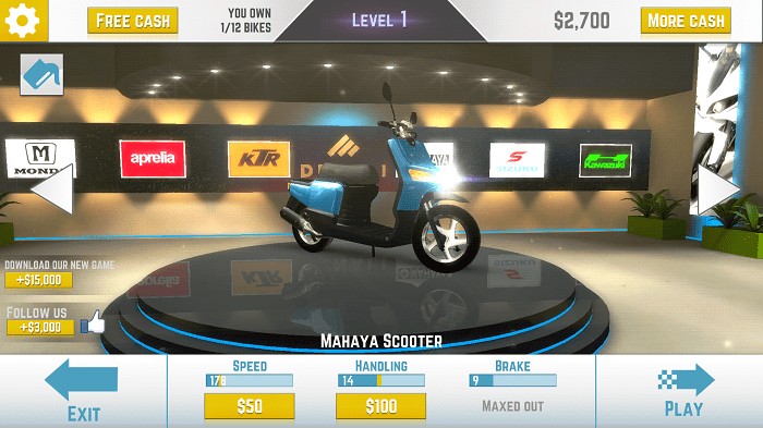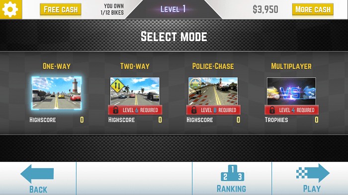 4、各种超赞的摩托车供玩家自由选择,更有竞技模式等着玩家!
