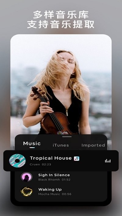 添加您自己的音乐到视频,如MP3文件和其他格式。