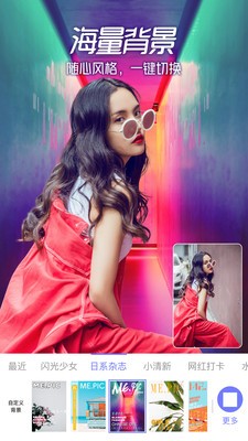 1、智能抠图换背景无需手动框出人物,App能自动识别女神们,与背景分离,一键更换海量背景,素材库每天都有惊喜为各位小主打call。