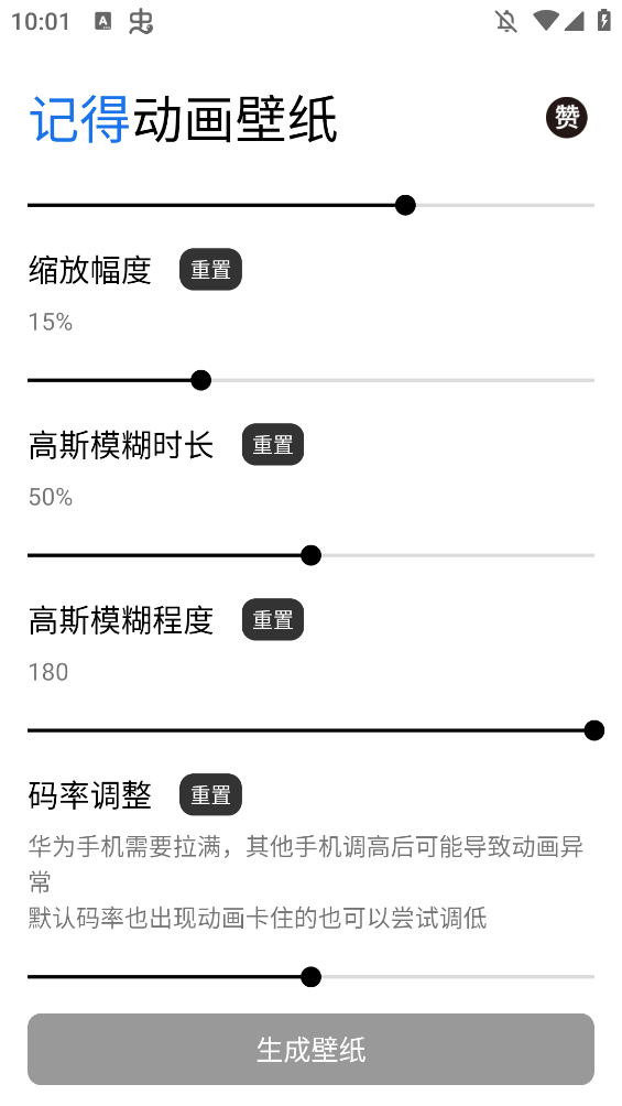 使用默认参数,并把画质调到最低,时长调到最低,尝试是否可以动,可以的话慢慢调高这两个参数,直到一个可以动的最高画质,自己在动画与画质之间权衡,或者重启手机有几率解决