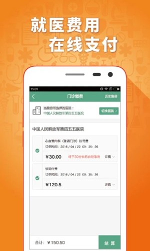 5.进入就医费用界面,用户可以查看就医详情并进行收集支付;