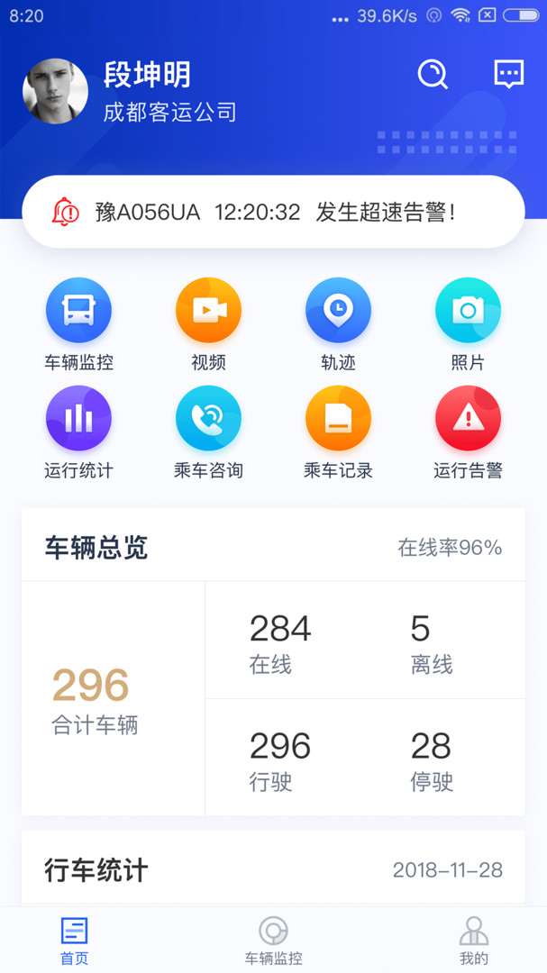 1、进入首页及时查看告警,车辆超速告警可以及时知道;