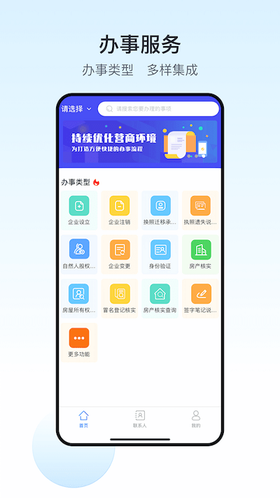 政务助手app是一款信息验证的系统服务软件,用户可以在应用程序中轻松验证信息而不需要到线下核实,那样太麻烦了。便于用户可以更好的掌握信息的真实度和易用性。软件为用户提供了很多服务项目,包含企业设立、企业变更、注销公司、申请注册等。用户可以按照自己的需要随意线上进行操作,使用起来简易便捷。您可以随意查询自己的的事项信息,便于用户可以更高效地了解并妥善处理。为用户提供多种不同的服务项目。全部有需要的用户都能够在这里解决你的问题。政务助手安卓版可以随时向用户消息推送提示信息,便捷用户进行查询,方便用户更有效地工作。