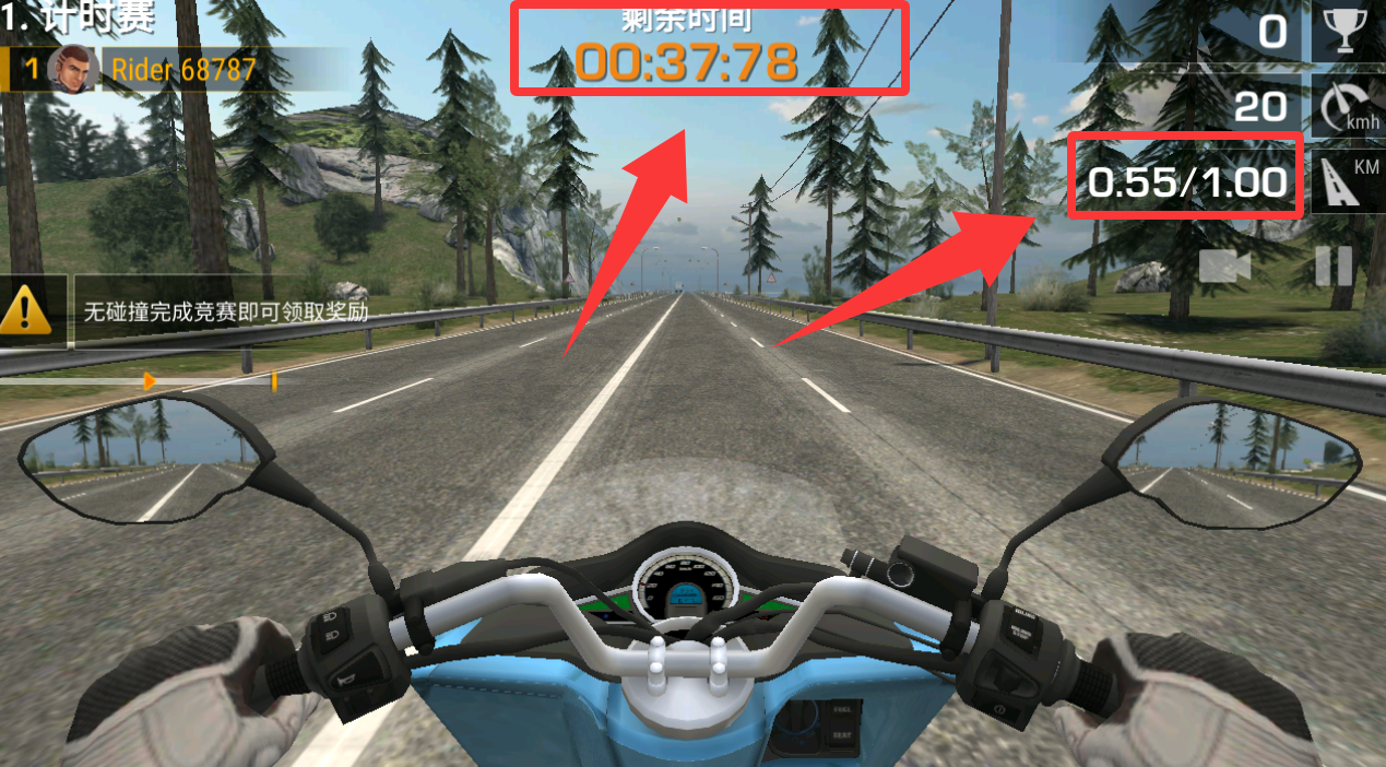 选择好了之后就可以开始进入游戏了,操控好摩托车尽量不要撞车哦!