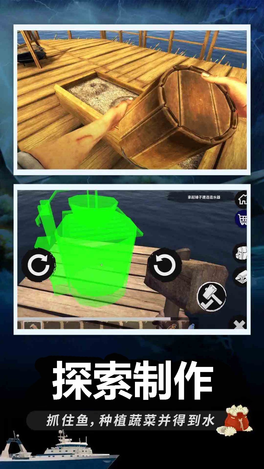 玩家出生在一片漫无边际的海洋上,身边唯一拥有的东西就是一只小木筏和一只钩子,而我们要做的就是利用钩子勾住海洋上漂流的东西,利用这些物资制作有用的工具、武器,来加固自己的木筏并生存下去;在游戏中你既能与朋友在线合作,也可以选择独自生存,并在这个过程中学习新技能,还能下到海底探索资源,不过要小心海中饥肠辘辘的鲨鱼。