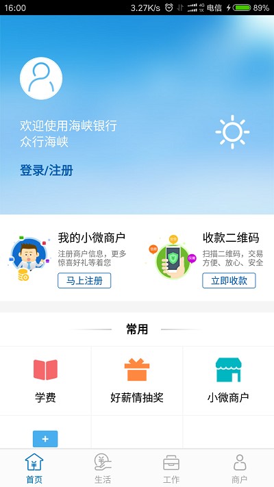 5、工作类应用:无论你是海峡银行的直销银行客户还是普通市民,一键注册绑定海峡银行卡后,即可畅行众行海峡应用。