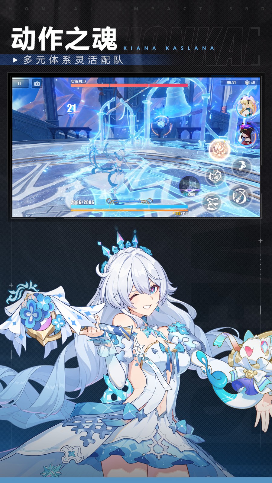 1、崩坏3游戏中的女战士神非常可爱。她有更多的技能需要释放,更多的战术需要战斗,并且完全了解舰队和各种角色;