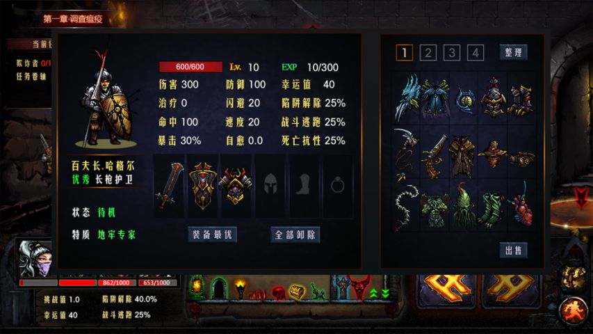 7、角色的选择上应该保证有前排防御(护卫,圣骑,)中后排有输出(龙女,刺客,枪手,猎人),有回复控制(牧师,炼金),共8个职业,合理安排阵容后选择进入地牢
