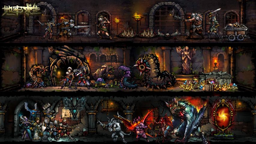 2、集结各路能力各异的冒险者,一同前往危险的地牢探索冒险;